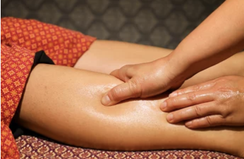 - 종아리를 아래에서 위로 쓸어올리며 마사지합니다.