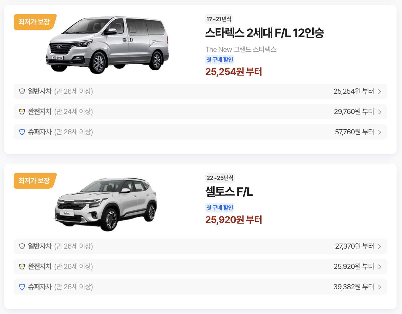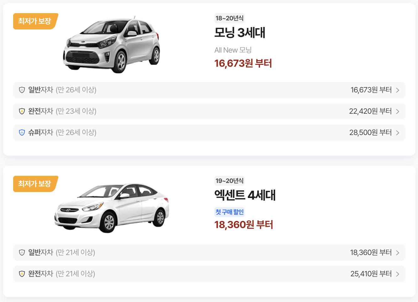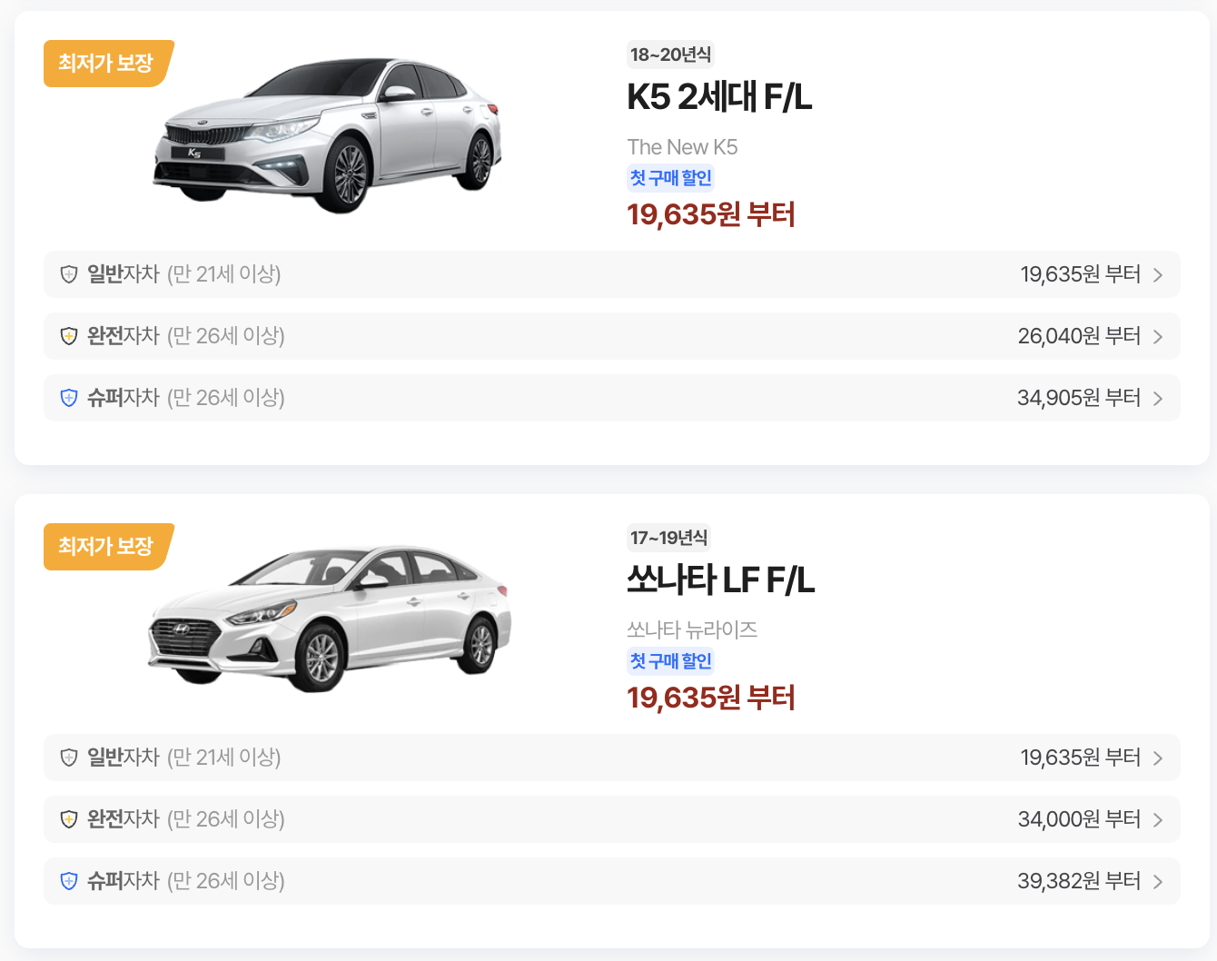 | 제주렌트카 | 제주도 지역 특화, 중소형 차량 저렴. | 하루 3.5만 원대~ |