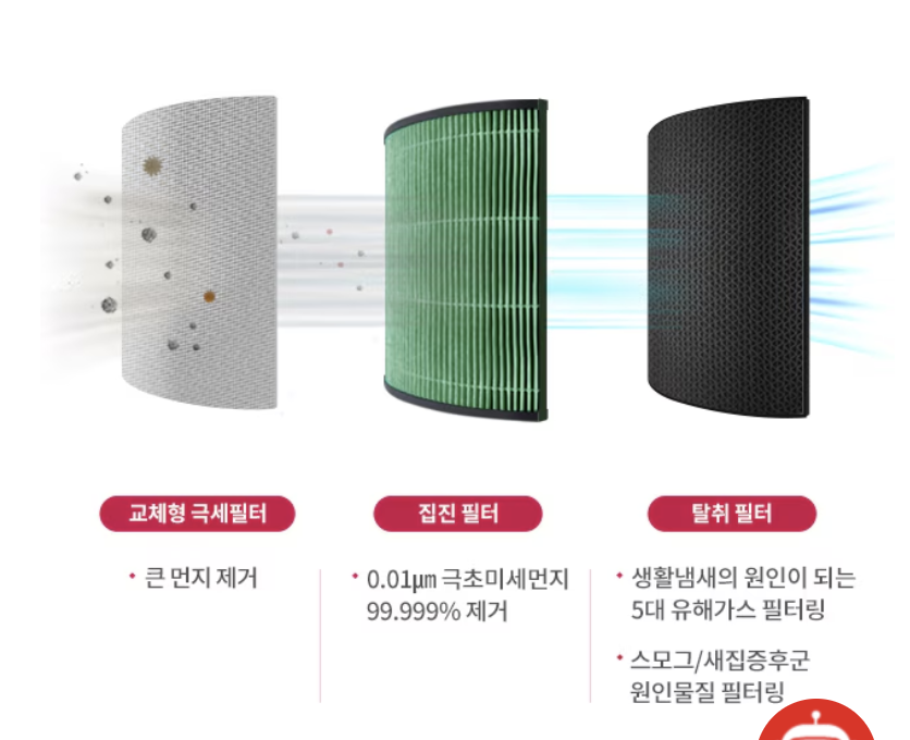 - HEPA 필터: 미세먼지와 초미세먼지 제거에 효과적입니다.