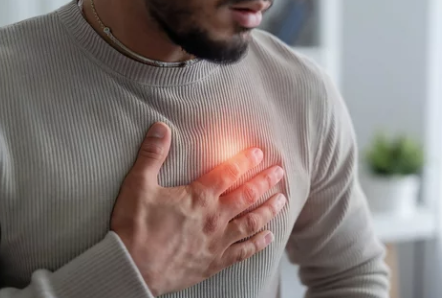 명치가 막히는 듯한 느낌과 함께 왼쪽 가슴 통증, 숨이 가쁘거나, 팔 저림, 식은땀이 동반된다면 심장 문제일 가능성이 있다.