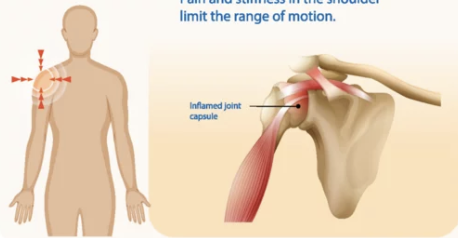 점차 어깨가 굳으면서 관절의 움직임이 제한됨