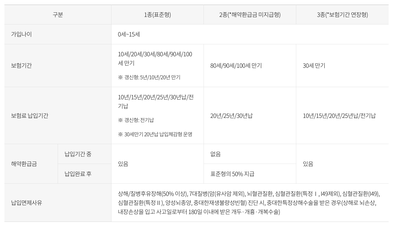 | 갱신 여부 | 비갱신형 / 일부 특약 갱신형 선택 가능 |