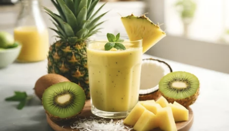 찐 고구마 + 요거트 + 견과류 + 꿀 약간 - 키위 바나나 스무디