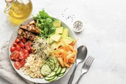 식사 전 생야채나 나물류를 먼저 먹으면 혈당 상승 속도를 늦출 수 있어요. - 단백질 + 좋은 지방을 반드시 포함