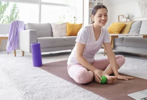 - 바닥에 누워 폼롤러를 어깨 아래에 두고 천천히 몸을 굴리면서 승모근을 풀어줍니다.
