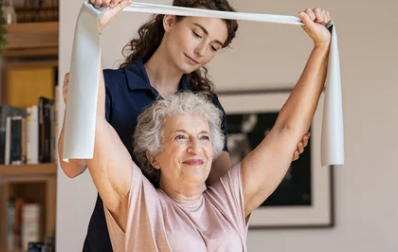 - 팔꿈치를 살짝 구부린 상태로 천천히 밴드를 양쪽으로 벌려 어깨 근육을 자극합니다.