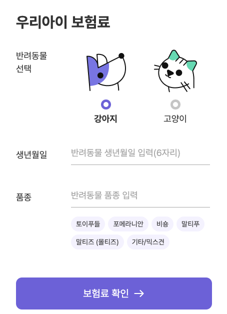 - 나이 제한: 고령 강아지의 경우 가입이 제한되거나 보험료가 높아질 수 있습니다.