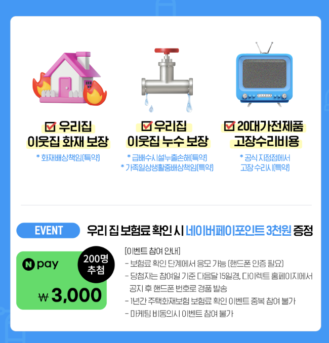 - 가재도구 피해 보상(옵션에 따라 다름)