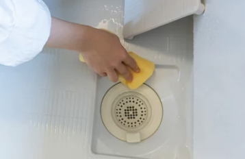 - 스펀지나 브러시로 문질러 닦아냅니다.