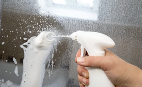 - 물때 부위에 세제를 분사한 뒤 10분 정도 기다립니다.
